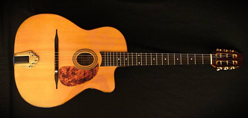 Der Hals besitzt einen funktionierenden Halsstab und ist gerade. Daher und aufgrund des schlanken Halses macht das Spielen große Freude. Die Gitarre spielt sich butterweich wie eine E-gitarre. Die Saitenlage ist ideal.