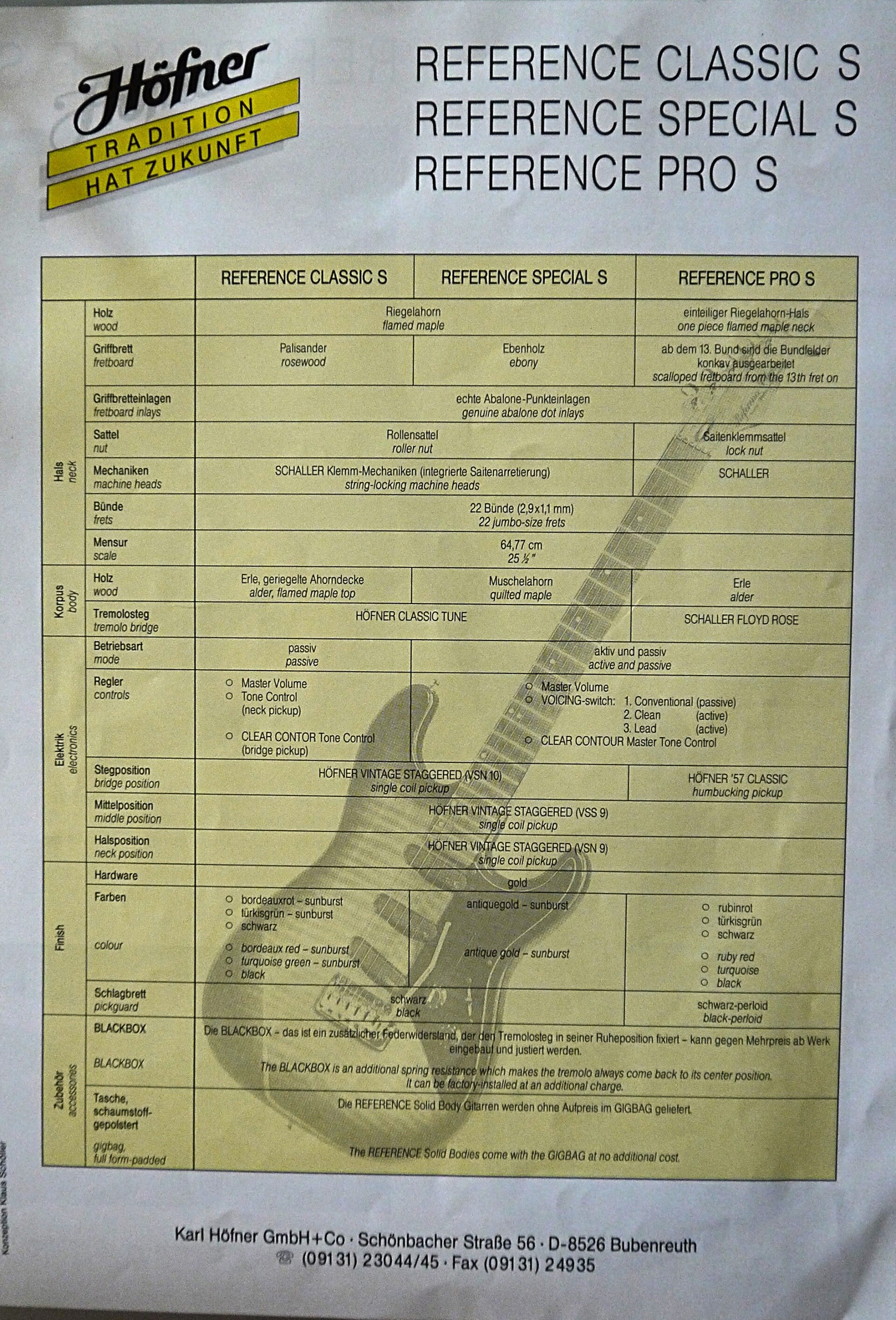Fabrikat: Höfner, Modell: Reference-S, Made in: Deutschland, Typ: Solidbody-Electric,