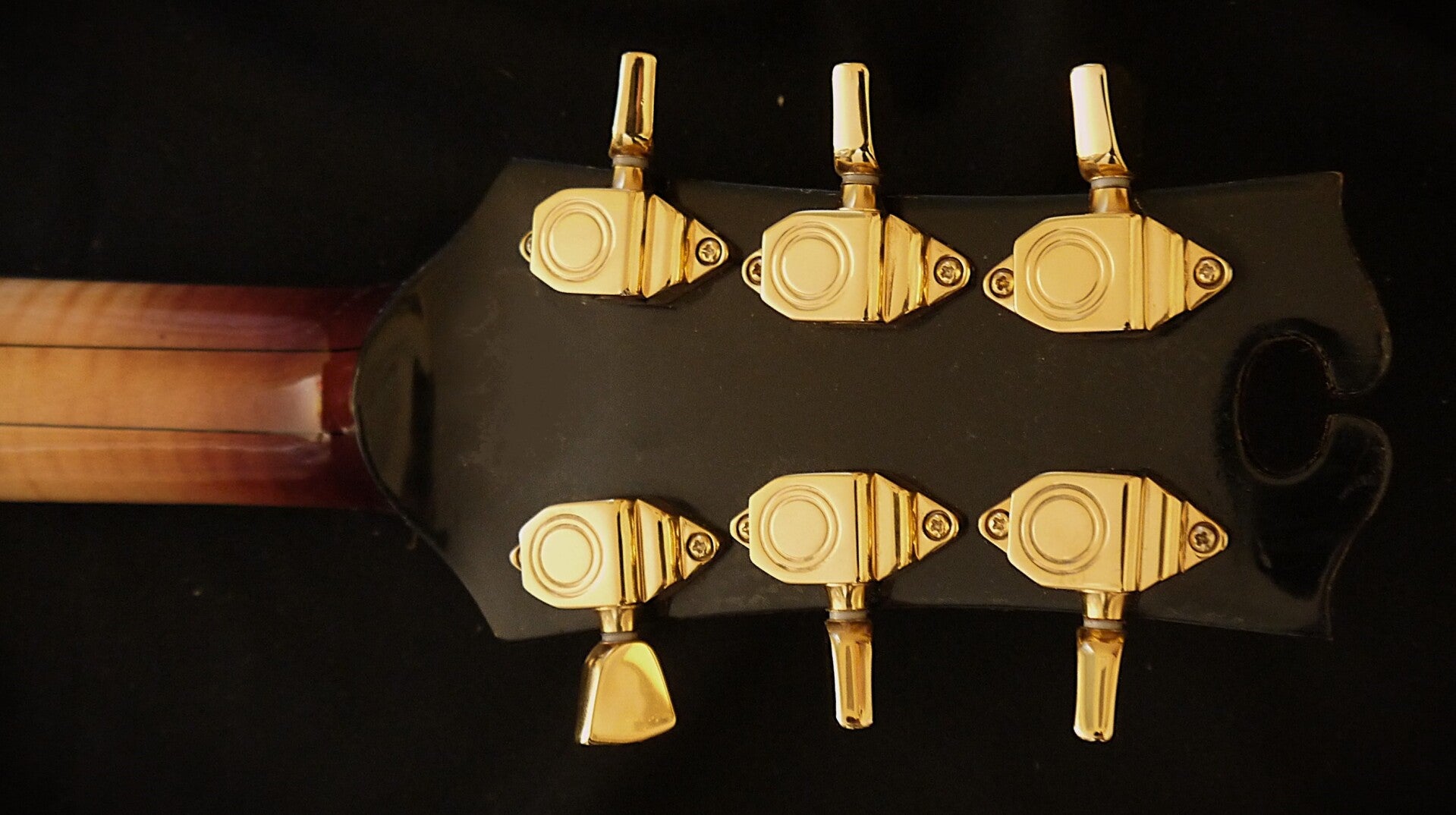 Metallteile: verchromt, Mechaniken: gekapselt, Schaller, Steg: FR-II, Schaller, unterfräst